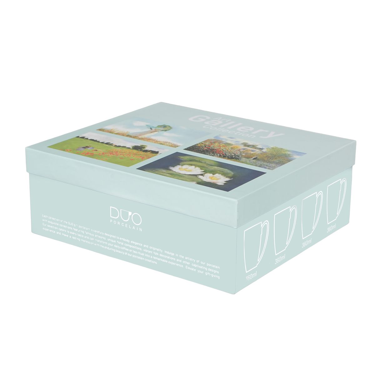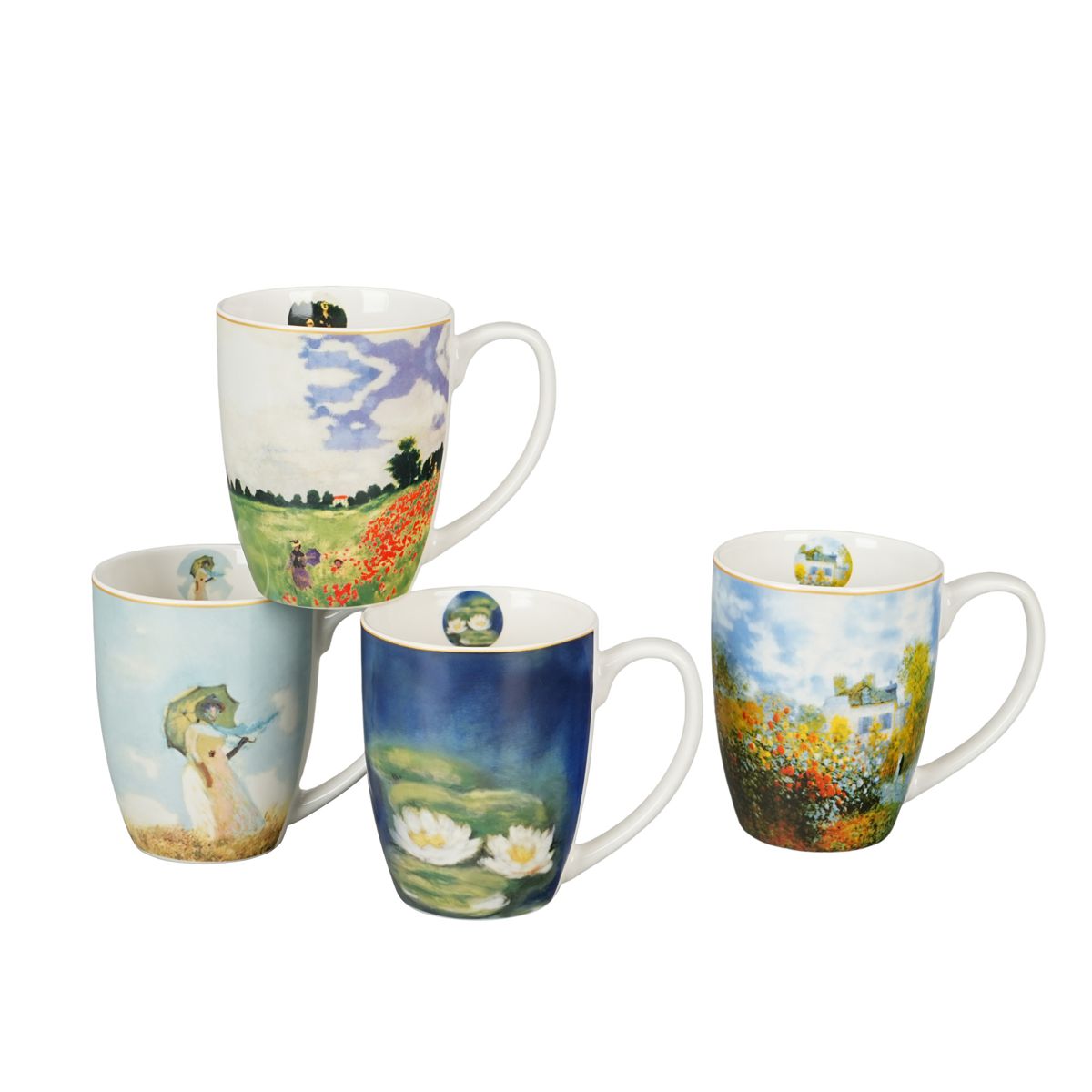 je 1 Henkelbecher mit Motiv: "Woman with a Parasol", "Poppy field" "Nenufars" and "The Artist’s Garden in Argenteuil"