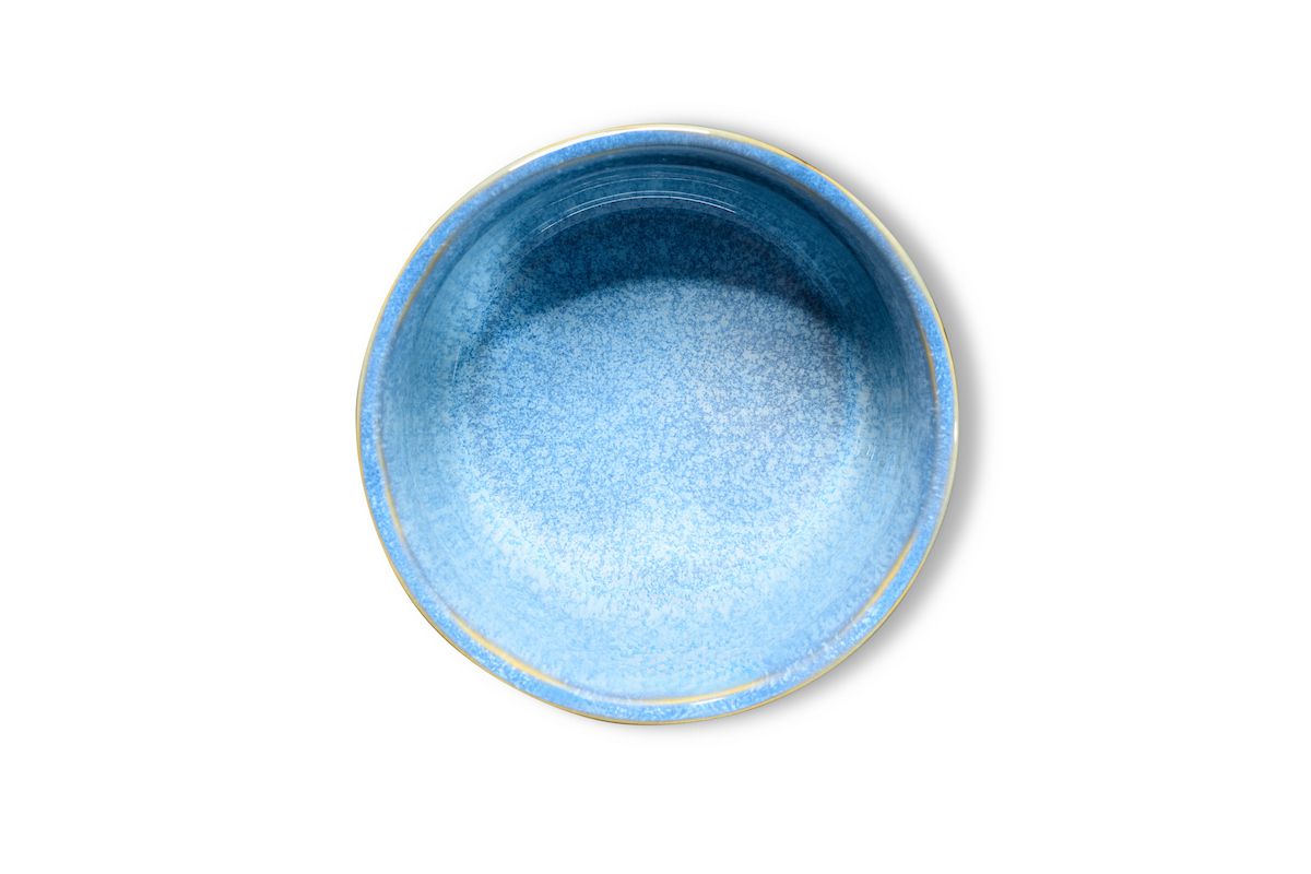 Die Matchaschale hat eine trendige reaktive Oberflächenglasur in edlen Farbtönen und ist ein richtiger Hingucker . Durch Schmelz- und Oxidationsprozesse während des Brennens entstehen bei dieser angesagten Glasurform individuelle und facettenreiche Farbverläufe die jeden Artikel zum Unikat machen.