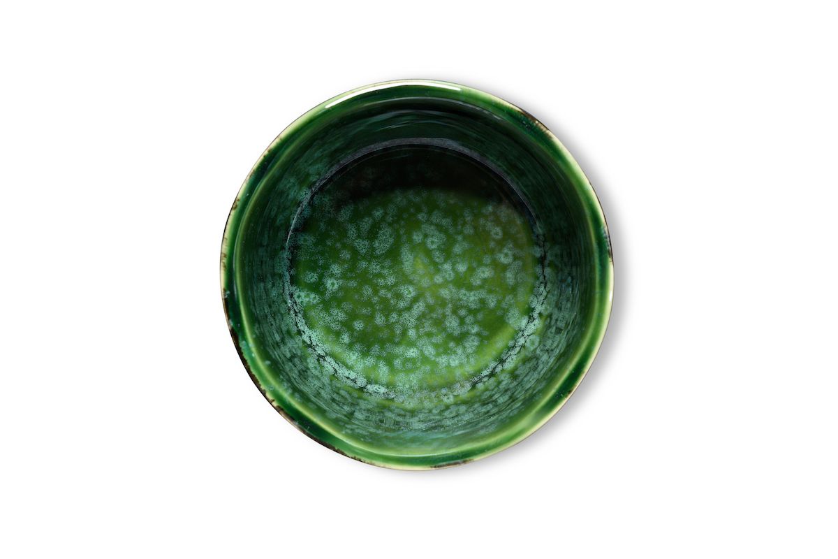 Die Matchaschale hat eine trendige reaktive Oberflächenglasur in edlen Farbtönen und ist ein richtiger Hingucker . Durch Schmelz- und Oxidationsprozesse während des Brennens entstehen bei dieser angesagten Glasurform individuelle und facettenreiche Farbverläufe die jeden Artikel zum Unikat machen.