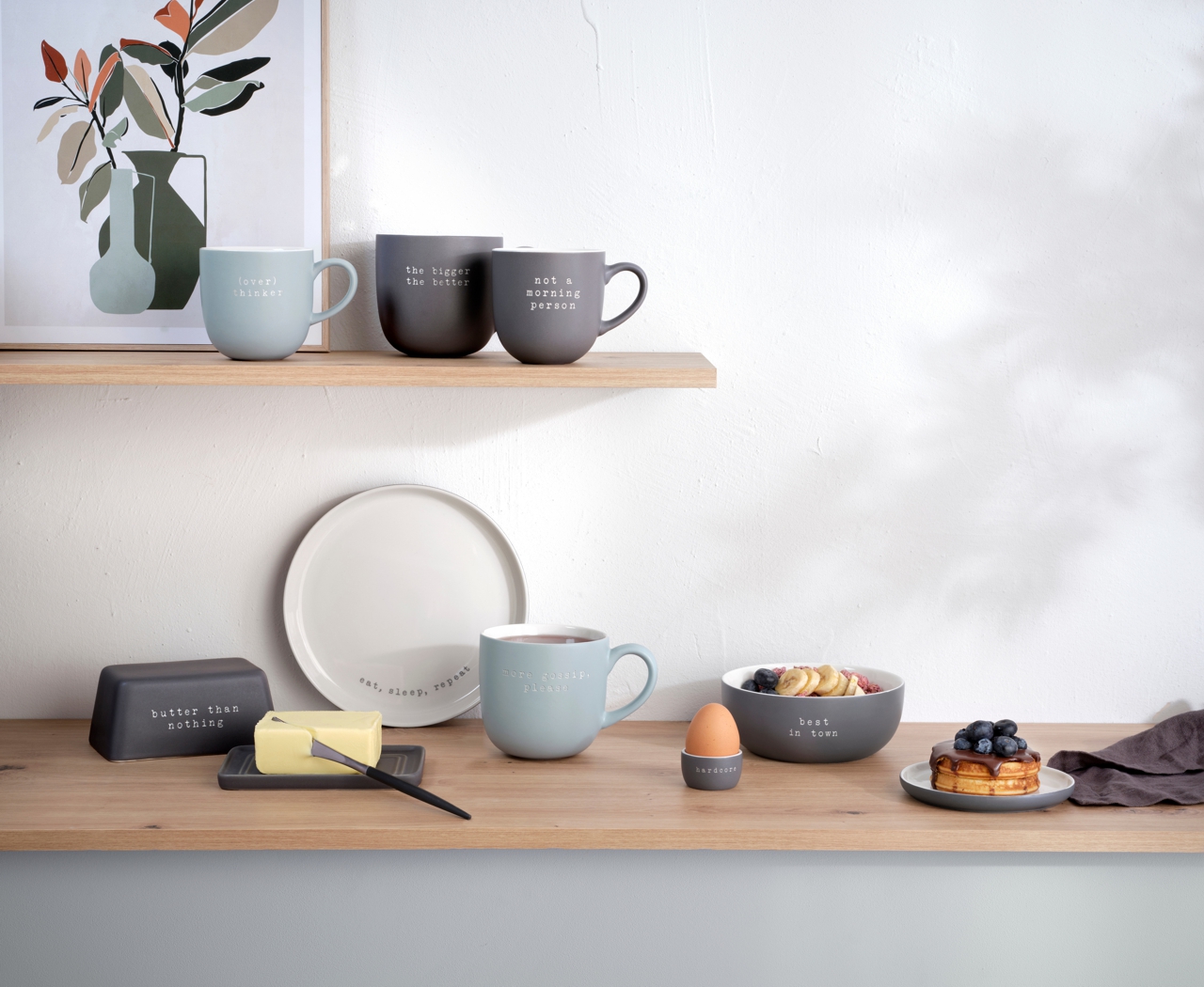 Die Hey! Mugs kommunizieren in Form von sandgestrahlten Statements Botschaften, die für gute Laune sorgen: you are awesome, weekend mode, not a morning person, friday feeling, coffee first, creative chaos, no thanks und simply the best lauten die insgesamt acht Botschaften, die jede aus einer anderen Dekorfarbe per Sandstrahl-Technik herausgearbeitet ist. Geeignet für Links- und Rechtshänder, perfekt stapelbar.