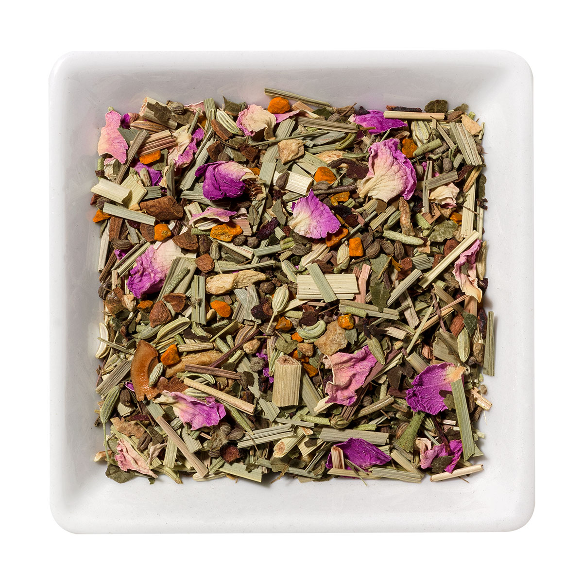 Zutaten: Apfelstücke*, Lemongras*, Kokosraspeln*, Karottenstücke*, Moringablätter*, Kokoschips*, Orangenschalen*(8%), natürliches Orangen-Vanille-Sahne-Aroma (enthält Milch), Himbeerblätter*, Kurkuma*, Orangenöl*(2%), Ringelblumenblüten*, Vanillestücke*(0,5%)