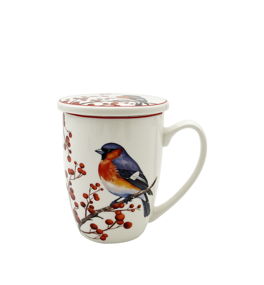 Becher mit 360 ml Fassungsvermögen, Teesieb und Deckel. Dieses Produkt ist aus New Bone China-Porzellan hergestellt, einem Material, das für seine ausgezeichnete Haltbarkeit und sein glänzendes, cremeweißes Aussehen bekannt ist.