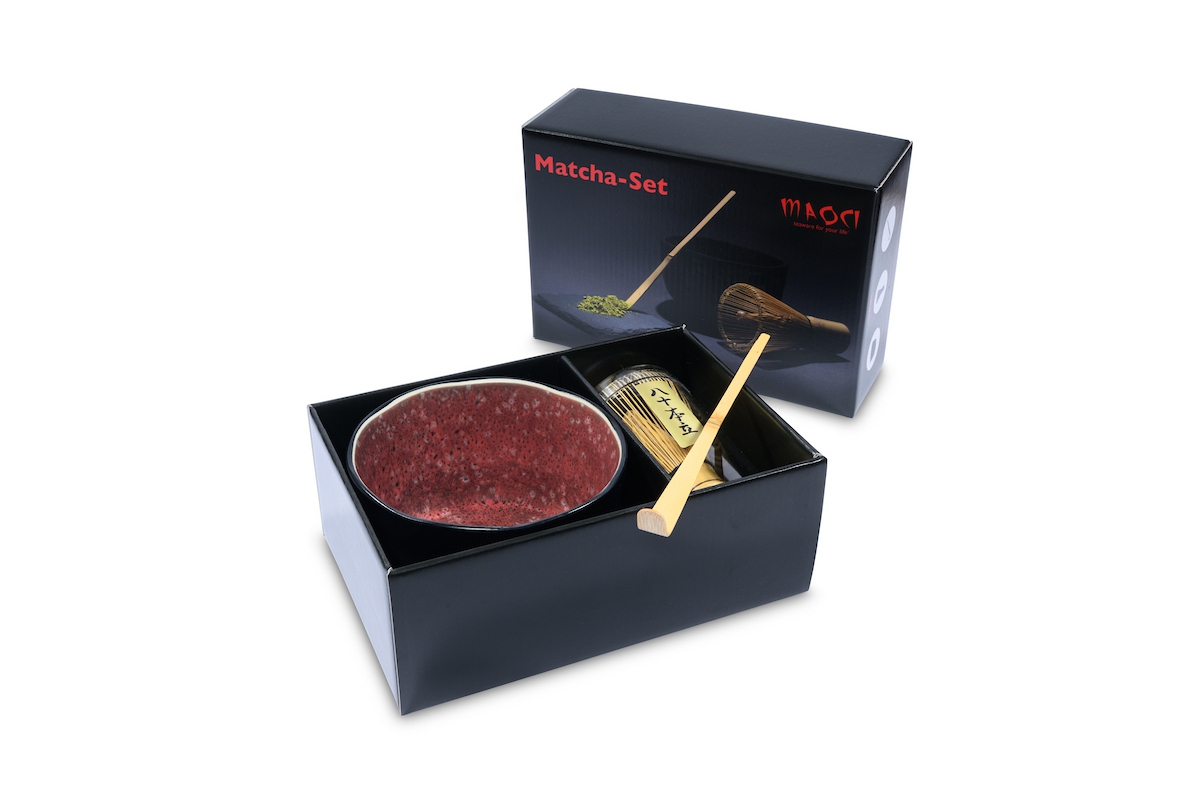 MAOCI Matcha Schale / Matchaset schwarz innen rot