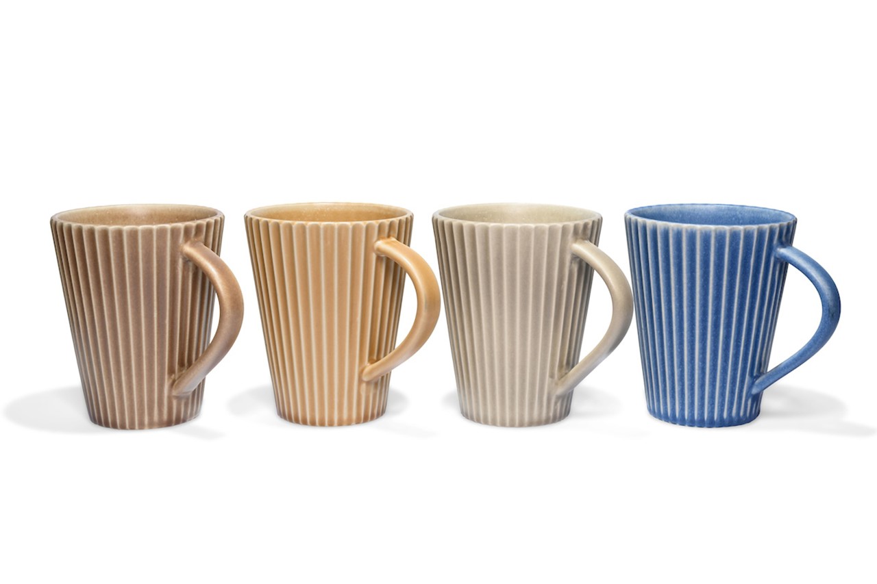 Matteo Henkelbecher Steingut 4er Set - 0,4 L - mit Rippen-Struktur